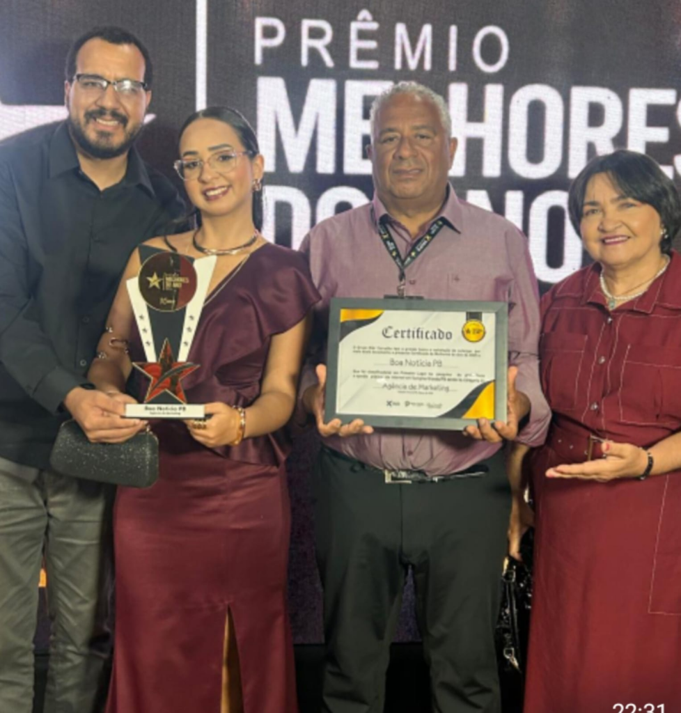 A agência Boa Notícia PB Comunicação e Marketing conquistou o título de Melhor Agência de Marketing de 2025, consolidando seu crescimento e destaque no setor, durante solenidade realizada no último domingo (29), no Garden Hotel, em Campina Grande.